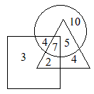 दिए गए चित्र में, वृत्त कारोबारियों को, त्रिभुज शिक्षित व्यक्तियों को और आयत 10000 रु० से अधिक प्रतिमाह आय वाले व्यक्तियों को दर्शाता है। प्रतिमाह 10000 रु० से अधिक आय वाले शिक्षित कारोबारियों की संख्या है।