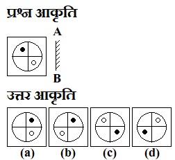 यदि एक दर्पण को AB रेखा पर रखा जाए, तो दी गई उत्तर आकृतियों में से कौन-सी आकृति प्रश्न आकृति की सही प्रतिबिम्ब होगी?